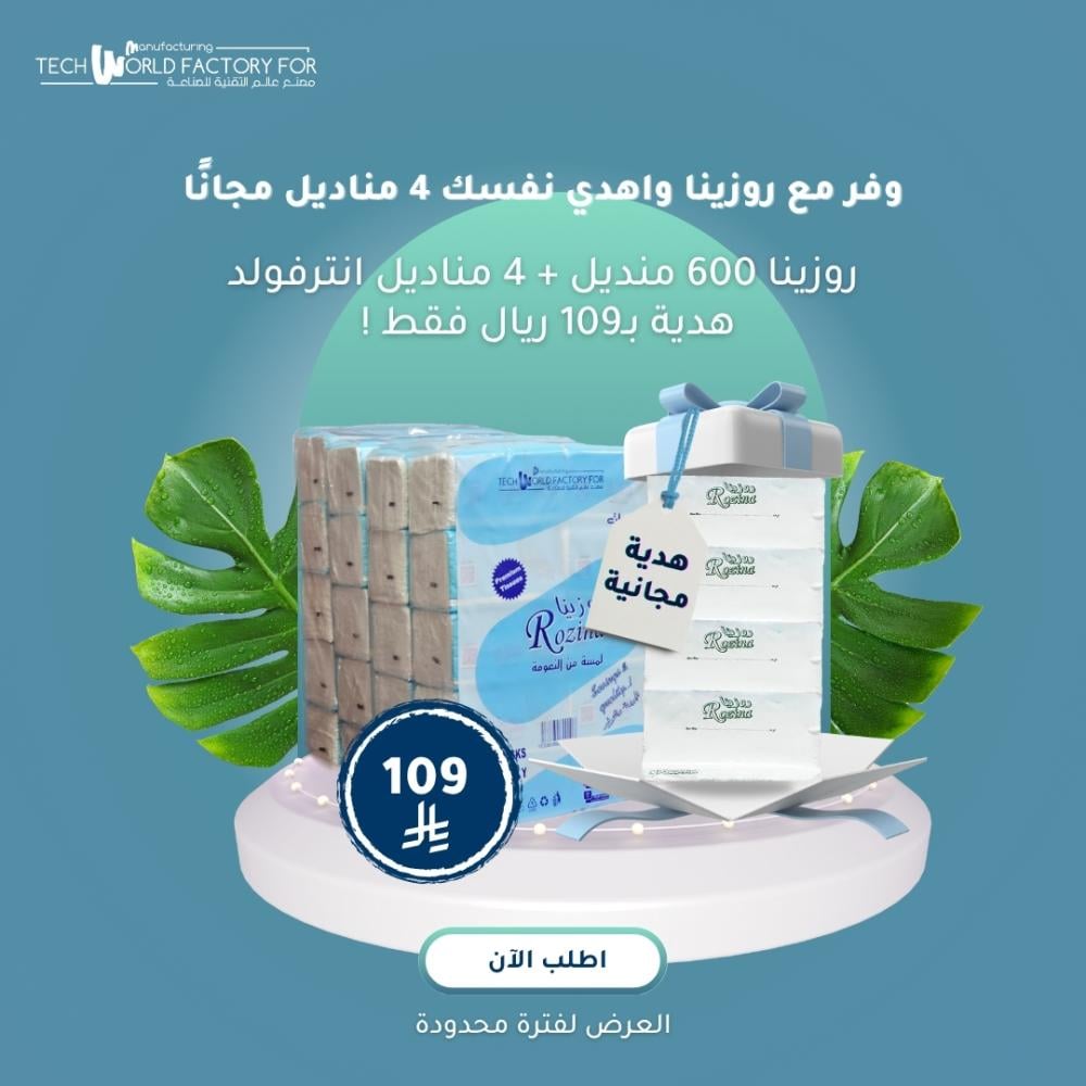 روزينا 600 منديل + 4 مناديل انترفولد هدية